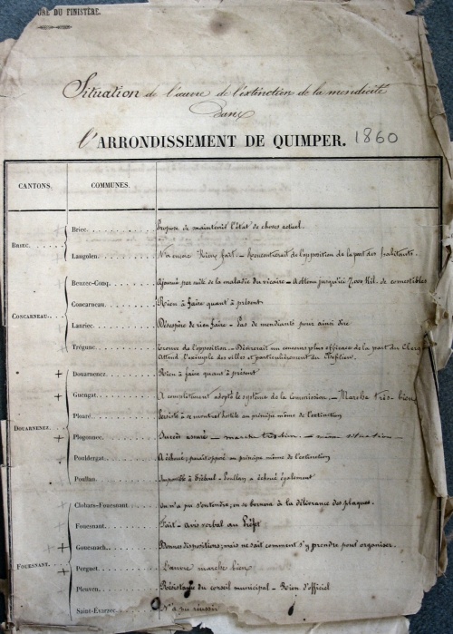 Situation de l’œuvre fr l'extinction de la mendicité dans l'arrondissement de Quimper.