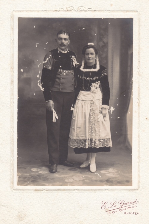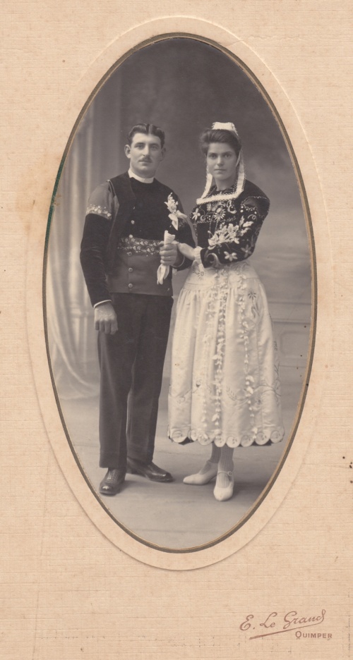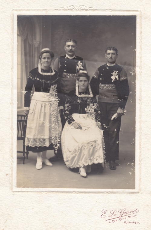 Marie Jeanne Yvonne est fille d'honneur de sa sœur Marie-Anne. Une 3e sœur, Marie Perrine, s'est mariée en 1913 avec Jean Louis Marie Tanguy de Quillihuec. Leur frère Michel s'est marié le 9 avril 1925 (cf photo en catégorie "un couple") à Marie-Louise Le Roux de Place-an-Intron au Bourg d'Ergué-Gabéric. |