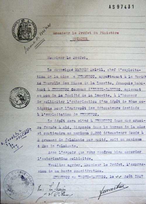 Demande d'autorisation préfectorale pour un dépôt de détonateurs de 3e catégorie par Melvil Martin |