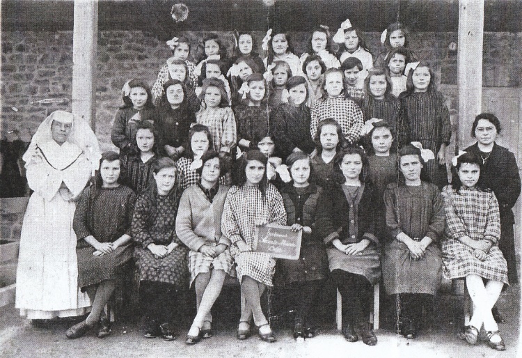 Certaines ont de très beaux rubans dans les cheveux et qui furent parmi les premières à fréquenter l'école Ste-Marie de Lestonan.