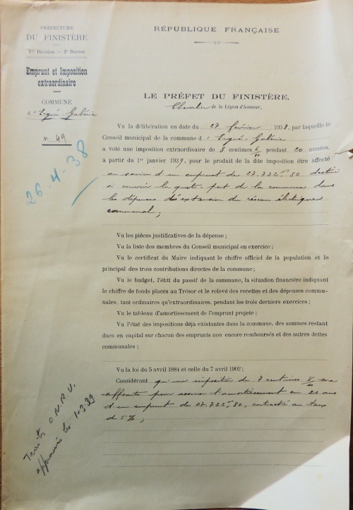 Emprunt et Imposition extraordinaire. Commune d'Ergué-Gabéric. N° 49.