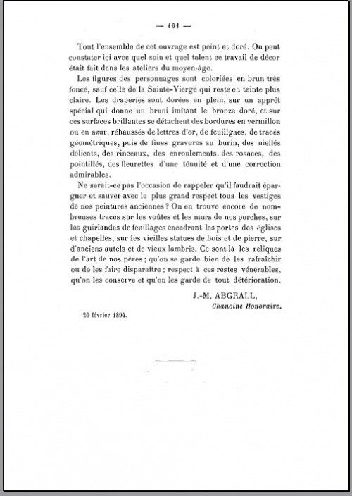 À propos de l'origine du retable, Jean-Marie Abgrall écrit : « L'examen le plus minutieux ne m'a pas permis de reconnaître dans le retable la moindre trace d'une marque de fabrique ; peut-être est-elle dissimulée par la peinture et la dorure qui recouvrent tous les personnages ; peut-être existe-t-elle dans le panneau supérieur qui a échappé jusqu'ici à mes investigations ; mais sans le moindre doute, il faut conclure que notre retable est une œuvre de cette école d'Anvers ». Le brouillon de cet article conservé à la Médiathèque des Ursulines de Quimper « 1880-1926 Notes et croquis du chanoine Jean-Marie Abgrall » ¤ Autres lectures : « Retable flamand de Kerdévot » ¤ « La nativité du retable de Kerdévot » ¤ « FATY Bruno - Le retable de Notre-Dame de Kerdévot » ¤ « DURAND Gildas - La statuaire à Kerdévot » ¤ « MUSÉE BRETON (Quimper) - Relations Bretagne-Flandres aux 14-16 siècles » ¤ « Espace Chapelle de Kerdévot » ¤ « Les marques de fabrique des ateliers flamands du 15e siècle sur le retable de Kerdévot » ¤ « Un concours de peinture pour le retable de Kerdévot » ¤ | |||||