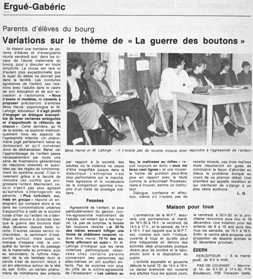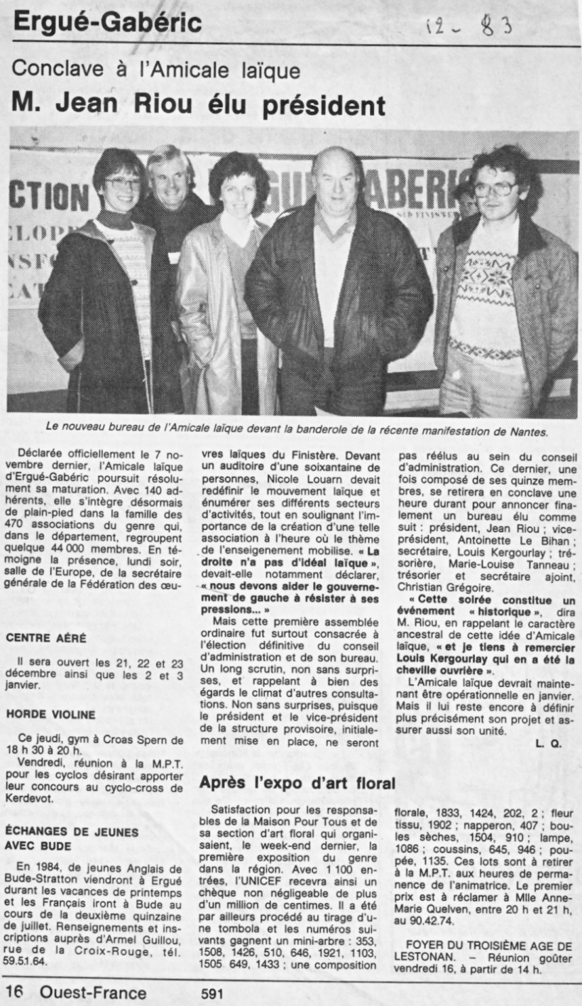 | En janvier, mars et décembre 1983 paraissaient dans les colonnes du Ouest-France des articles de Laurent Quevilly sur les transports scolaires, les parents d'élèves et l'amicale laïque ....