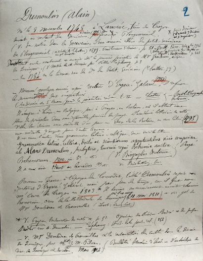 Trois lettres adressées au district de Quimper dans lesquelles il donne des explications sur son traitement de recteur : « 1790 - Lettres d'Alain Dumoulin sur la dîme et son traitement de recteur ». |