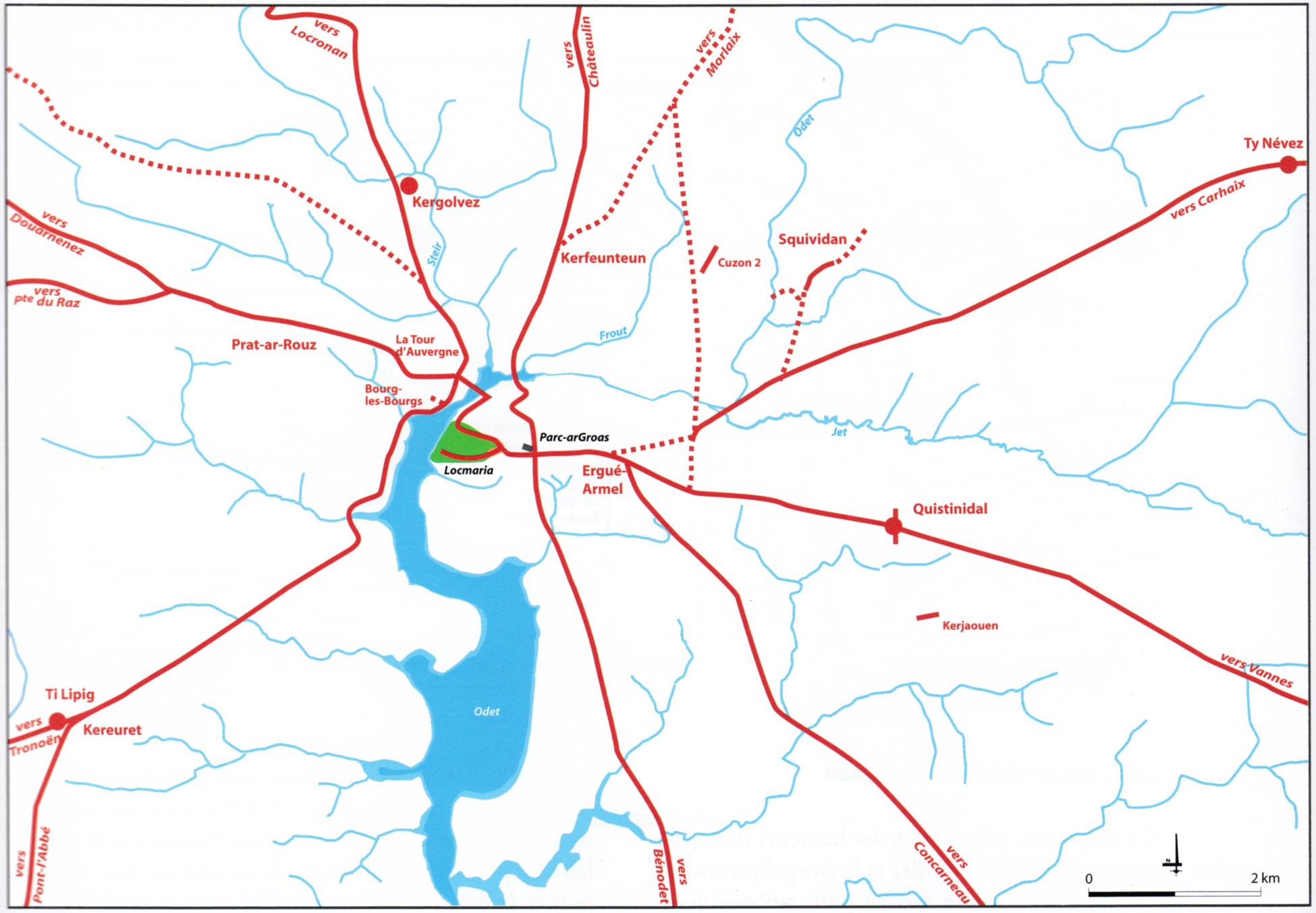 Autres lectures : « VILLARD Jean-François - Vestiges et paysage rural antique de Squividan » ¤ « Vestiges d'habitat gallo-romain à Tréodet, Le Télégramme 2008 » ¤ « PICQUENARD Charles-Armand - L'occupation romaine dans le bassin de l'Odet » ¤ « CHATELLIER Paul (du) - Les époques préhistoriques et gauloises dans le Finistère » ¤ « Intervention archéologique à Salverte-Nord en 1987, fossés gallo-romains » ¤ |