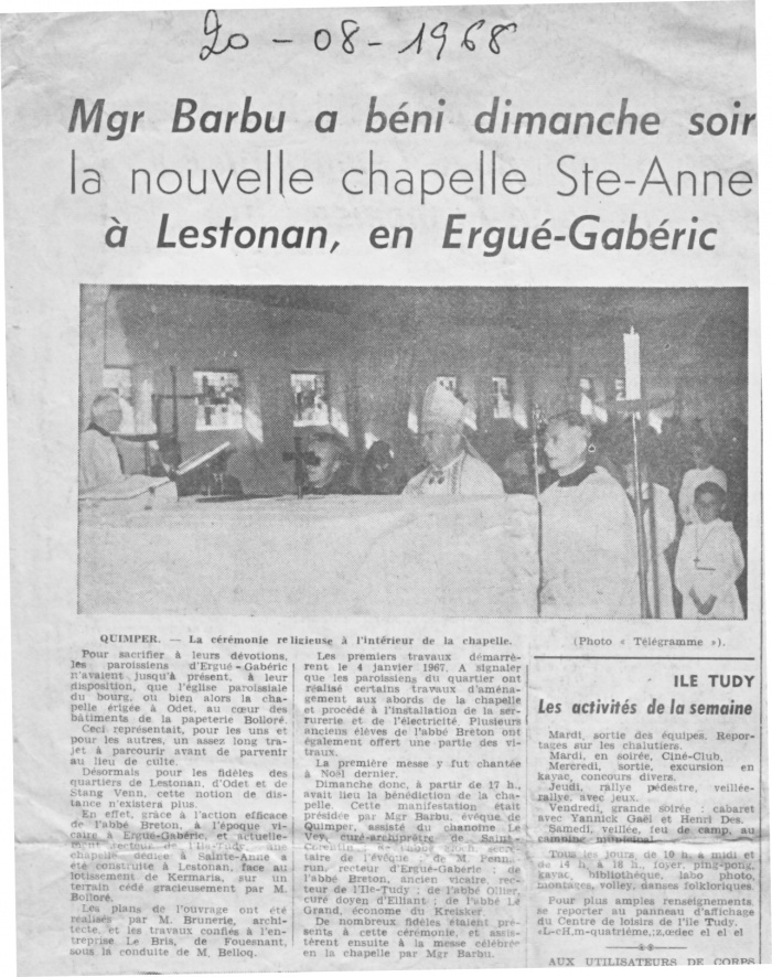 Bénédiction de la chapelle de Keranna, Le Télégramme 1968