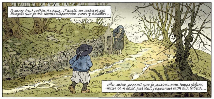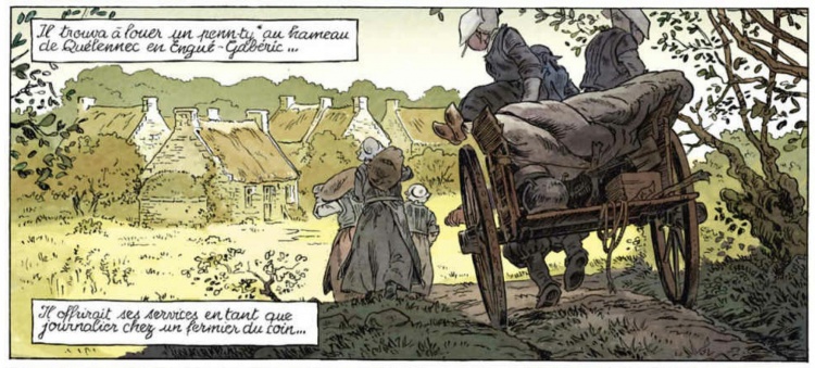 Tous trois ont réussi à adapter et produire une version très réussie des mémoires d'un paysan bas-breton, lancée en octobre 2017 par un premier tome « Le Mendiant », dont les couleurs inter-générationnelles pourraient se rapprocher de celles de la BD du « Cheval d'Orgueil » Dans les « Mémoires d'un paysan bas-breton », le jeune Déguignet et ses familiers y sont magnifiquement dessinés comme les petits personnages d'Olivier Perrin dans la « Galerie Bretonne » On remarquera entre autres la première pleine page d'une rue quimpéroise, l'arrivée dans la campagne de Quélennec, les belles planches de l'histoire du « C'haz du » (chat noir), les scènes de curés sermonnant, la cohabitation avec le « Christoc'h Du » au château de Lezergué, les délires du vieux Déguignet écrivant ses mémoires à l'asile.