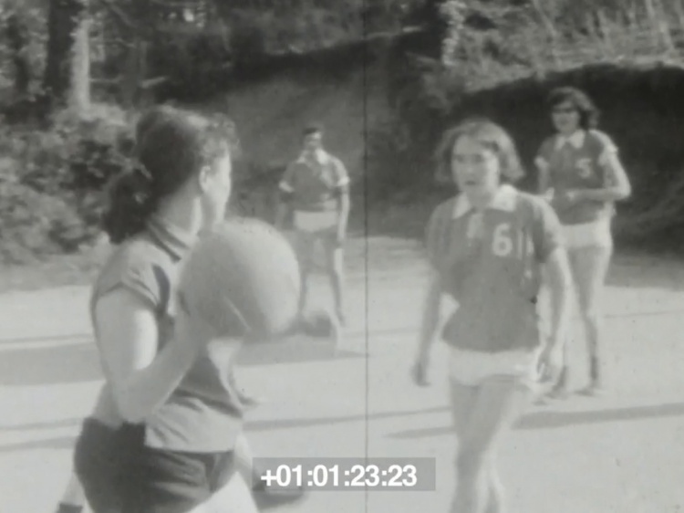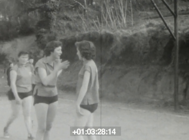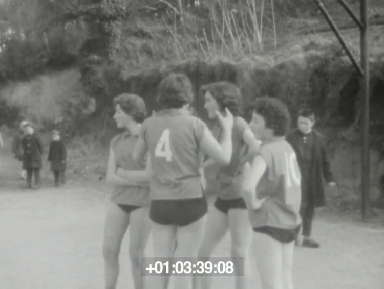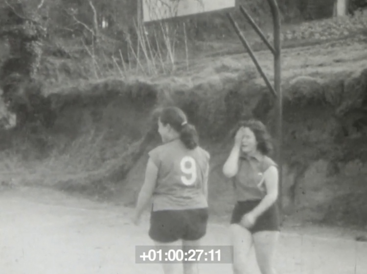 La vidéo nous montre des spor-tives gabéricoises en shorts noirs affrontant une équipe adverse en shorts blancs. On y reconnait notamment : Madeleine Lore-Narvor, Odile Quéré, Jeanine Narvor-Bosser, Marie Hascoët.