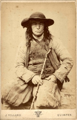 « Cette bonne femme était une mendiante professionnelle; elle se chargeait de m’apprendre l'état. Elle indiqua à ma mère comment il fallait confectionner ma besace ... » Jean-Marie Déguignet, Mémoires d'un paysan bas-breton, 1844.