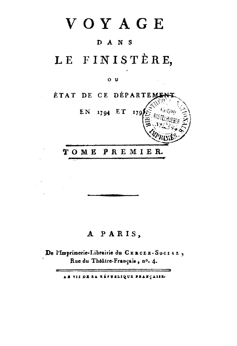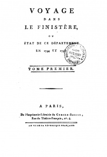 Jacques Cambry [1] est le receveur général des États de Bretagne, puis, en 1794, Commissaire des Sciences et des Arts. À ce titre, il effectue en 1794-1795 son voyage dans le Finistère afin de visiter les dépôts de biens confisqués à la noblesse et aux couvents, sur lesquels il publie son rapport en 1799. Une autre édition sera publiée, accompagnée de notes historiques, par le Chevalier de Fréminville en 1836. L'ouvrage est réédité par la "Société archéologique du Finistère" en 1999 [ISBN 2-906790-04-4].