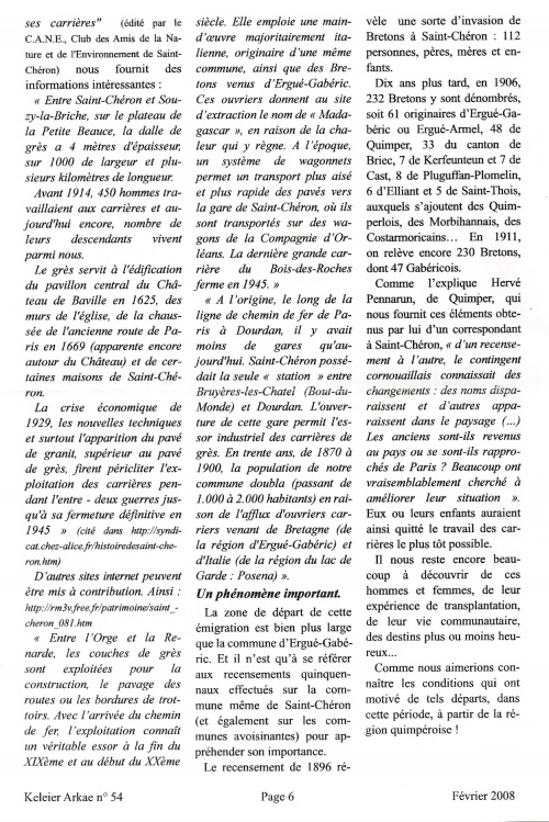 Henri Chauveur a publié sur son site Internet un complément d'enquête où il a rassemblé des explications sur le phénomène migratoire entre Ergué-Gabéric et Saint-Chéron et des informations généalogiques :