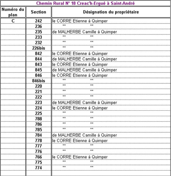 Chemins ruraux N°18 bis Creac'h-Ergué à Saint-André