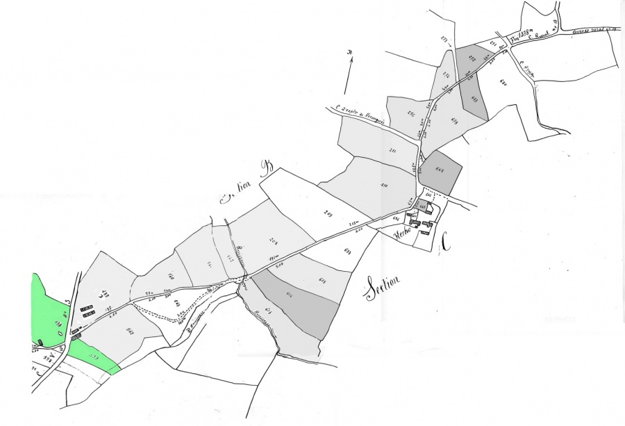 En grisé clair les propriétés Bolloré et en foncé celles de Jean Thepaut de Kerho (sauf 663)
