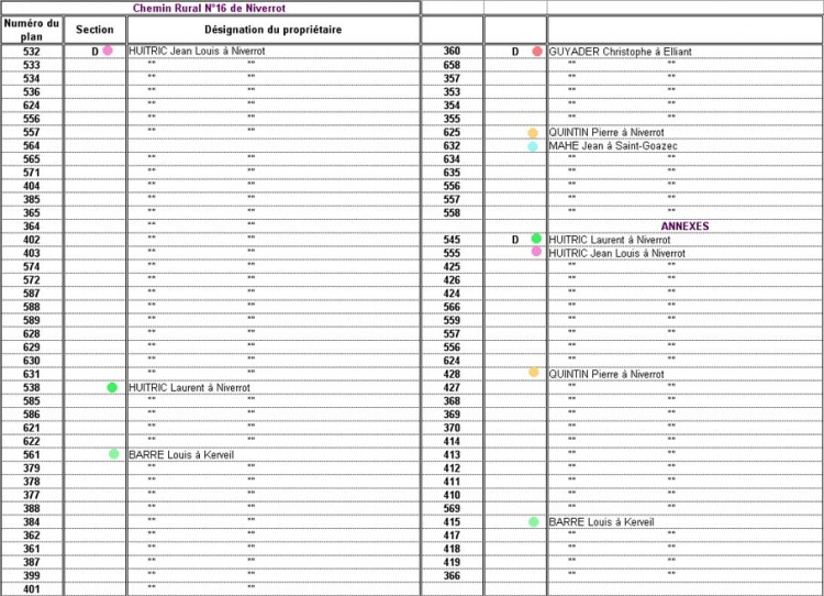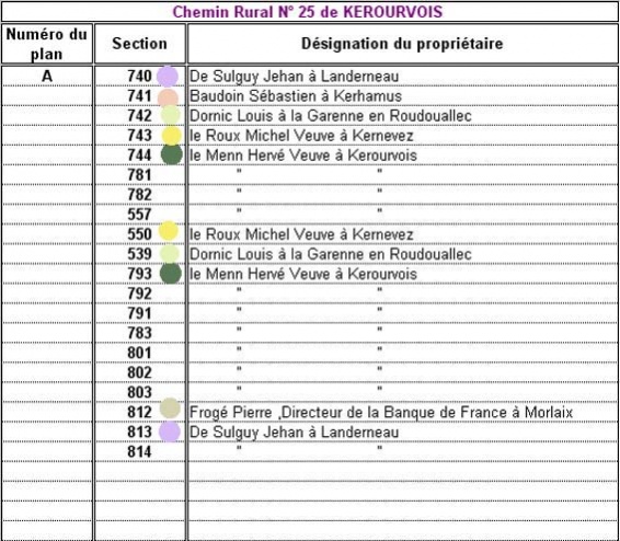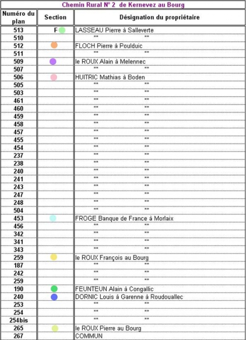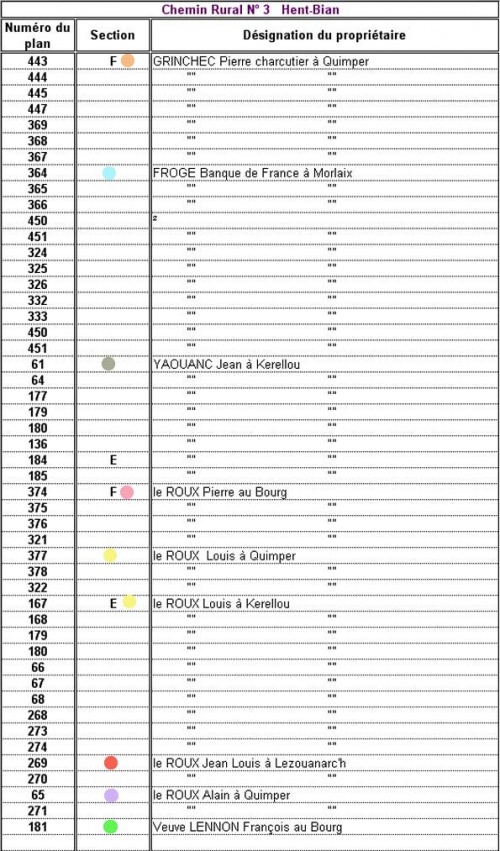 Ce classement sera officialisé en 1919-20, permettant de distinguer les Chemins Ruraux des Chemins Vicinaux Ordinaires (C.V.O.) et les Chemins de Grande Circulation (C.G.C. au nombre de 2, le n° 15 vers Coray et le n° 51 vers Langolen depuis St-André). Les différences entre chemin d'exploitation (ou sentier), chemin rural ou chemin vicinal sont :