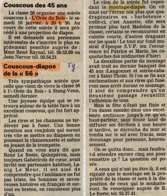 Couscous-diapos de la classe 56, Le Télégramme 1982