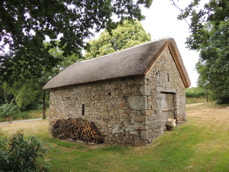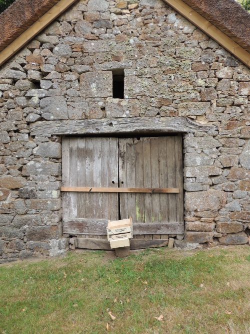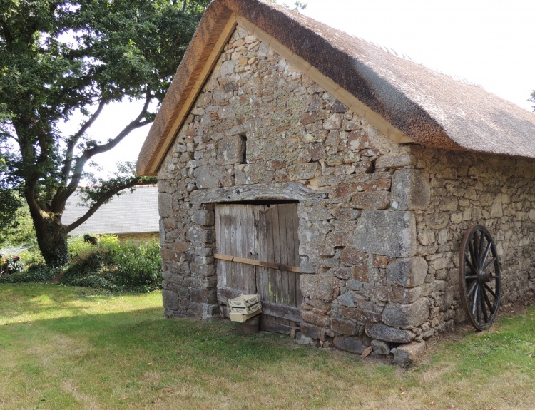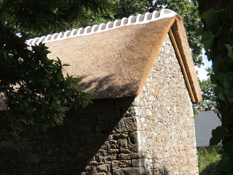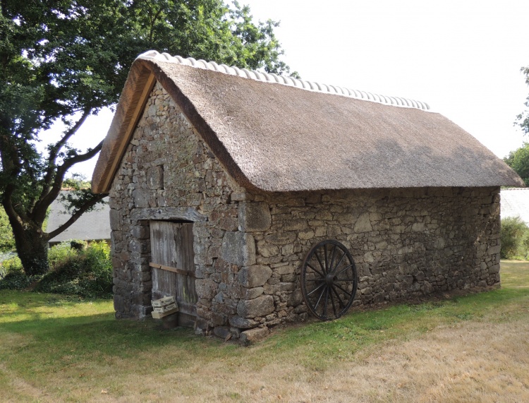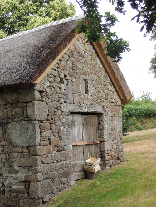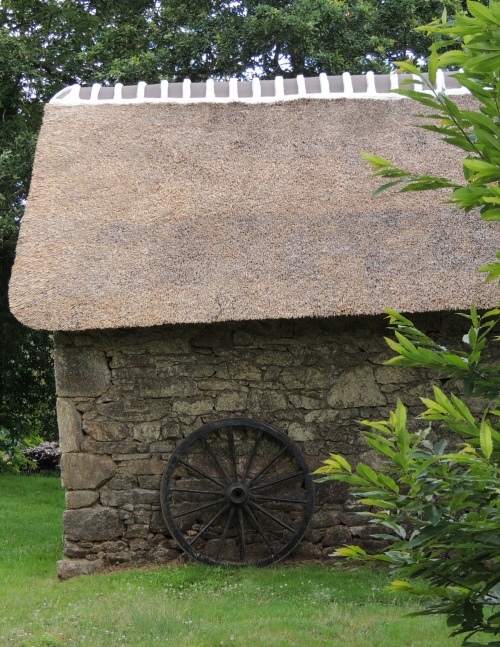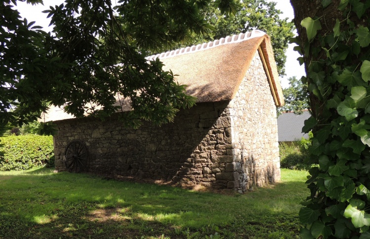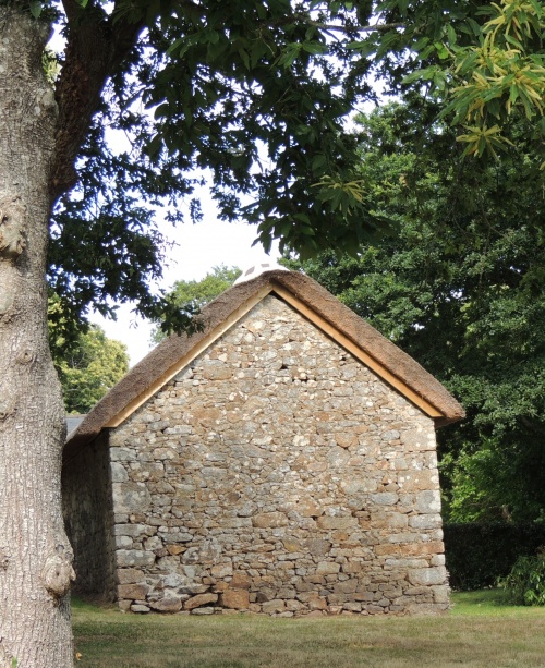 Crêche au toit de chaume et linteau de pierre du 16e au village de Kerveady