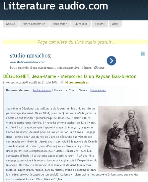 Autres lectures : « DÉGUIGNET Jean-Marie - Mémoires d'un paysan bas-breton (Revue de Paris) » ¤ « DÉGUIGNET Jean-Marie - Mémoires d'un paysan bas-breton (Wikisource) » ¤ « DÉGUIGNET Jean-Marie - Mémoires d'un paysan bas-breton (eBook) » ¤