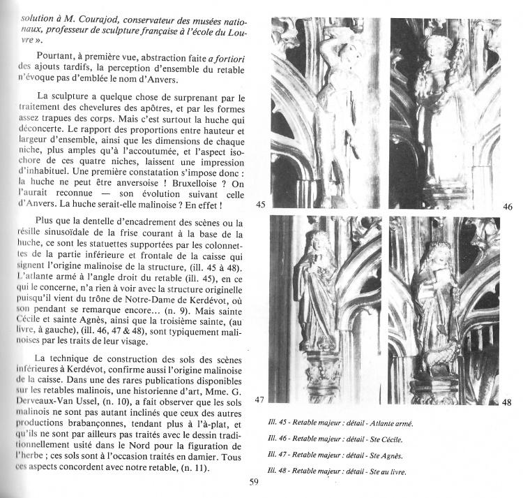 Dans un premier temps, Gildas Durand fait le point sur les origines du retable majeur flamand : « Le retable de Kerdévot n'est pas une œuvre exclusivement anversoise et du XVIe siècle comme on l'a souvent dit, mais un travail mixte de la fin du siècle précédent ».