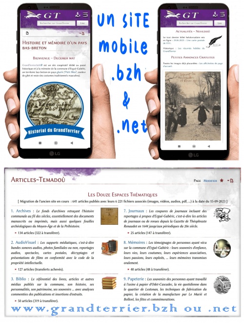 Le GrandTerrier s'appuie sur une association 1901 « Les Mémoires du GrandTerrier » représentant le réseau des contributeurs désireux de faire revivre les pans encore inconnus ou méconnus de l'histoire communale. Pour rejoindre ce réseau, il suffit de s'inscrire en ligne. L'inscription amène automatiquement le droit de recevoir gratuitement par courrier électronique le bulletin "Kannadig". L'énergie collective est mise dans la constitution d'une véritable base de connaissance vivante et perpétuellement enrichie.