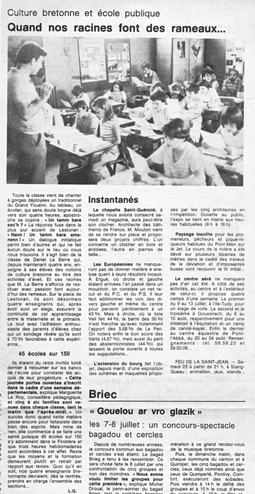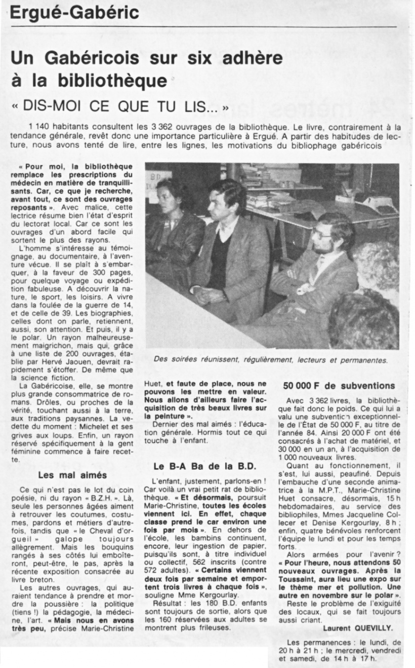 En juin 1984, le 30 octobre paraissaient dans les colonnes du Ouest-France des articles de Laurent Quevilly sur la vie dans les écoles, les activités de la maison pour tous, la bibliothèque ...
