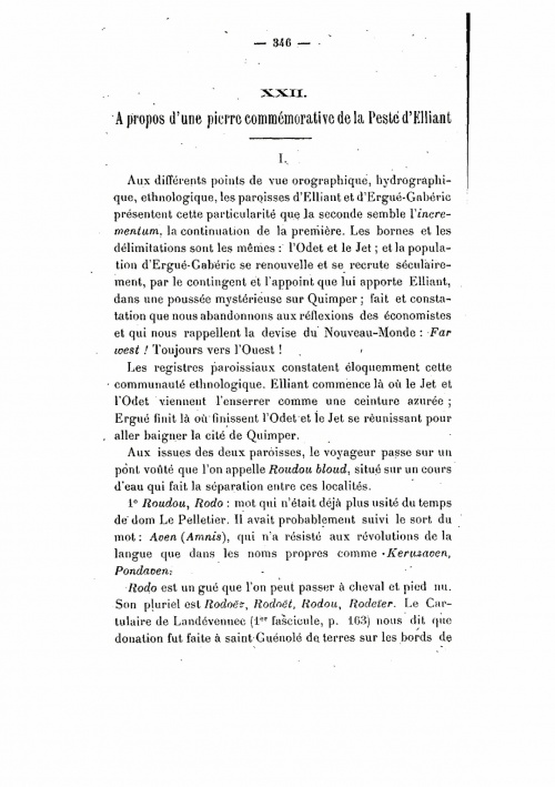 | Cet article a été publié dans le Bulletin de la Société Archéologique du Finistère en 1893. Antoine Favé était prêtre sur Ergué-Gabéric.
