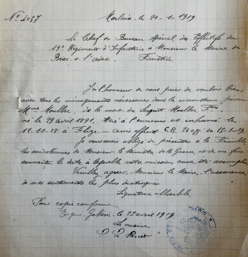 François-Marie Moullec (1891-1918), sergent du 19e RI