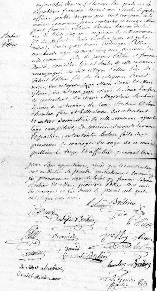 # NDRL/GT: en fait François-Salomon Bréhier a pour père Claude le Jeune, pour mère Julie Vincent et est né en 1760. Son oncle Gilles l'Ainé, frère de Claude, a eu en 1753 un fils prénommé également François-Salomon-Marie.