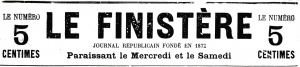 - Le Finistère : journal politique républicain fondé en 1872 par Louis Hémon, bi-hebdomadaire, puis hebdomadaire avec quelques articles en breton. Louis Hémon est un homme politique français né le 21 février 1844 à Quimper (Finistère) et décédé le 4 mars 1914 à Paris. Fils d'un professeur du collège de Quimper, il devient avocat et se lance dans la politique. Battu aux élections de 1871, il est élu député républicain du Finistère, dans l'arrondissement de Quimper, en 1876. Il est constamment réélu, sauf en 1885, où le scrutin de liste lui est fatal, la liste républicaine n'ayant eu aucun élu dans le Finistère. En 1912, il est élu sénateur et meurt en fonctions en 1914. [Ref.↑]