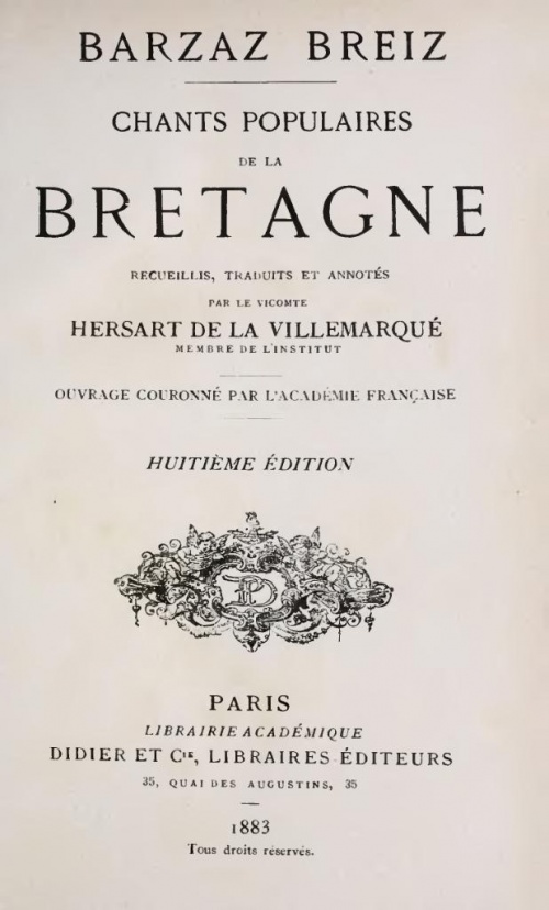 Autres lectures : « Alain Dumoulin (1748-1811), prêtre et écrivain » ¤ « Petite Fantaisie sur l'enfer / Ha Doue bardono nanaon / J-M. Deguignet » ¤ « VILLEMARQUÉ Théodore Hersart (de la) - Le Barzaz Breiz » ¤ | |||||||