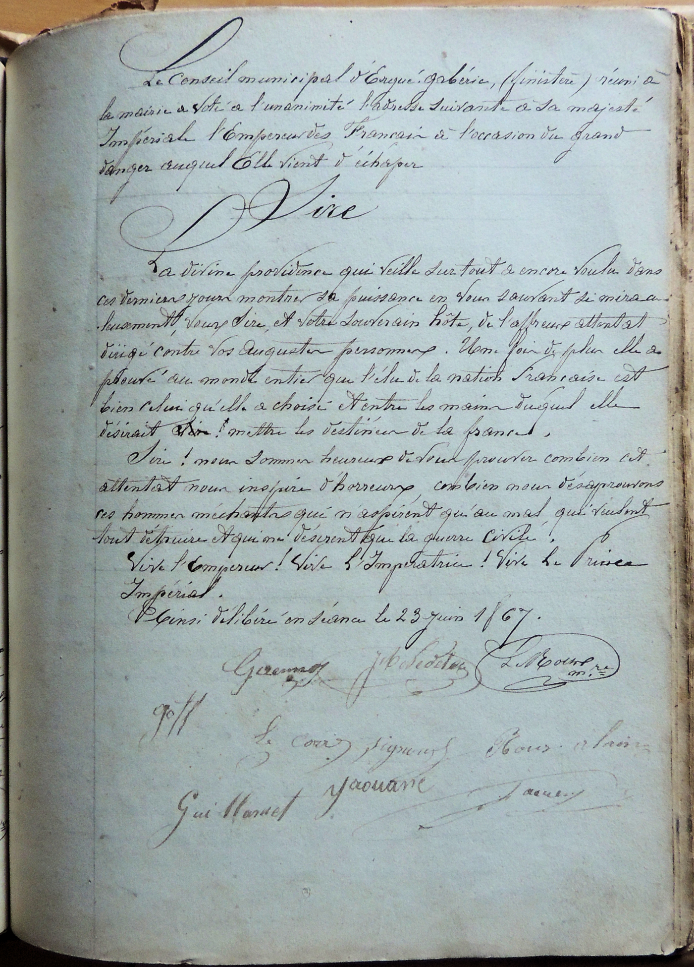 - 1867 - Lettre à l'Empereur Napoléon III suite à l'attentat du 6 juin