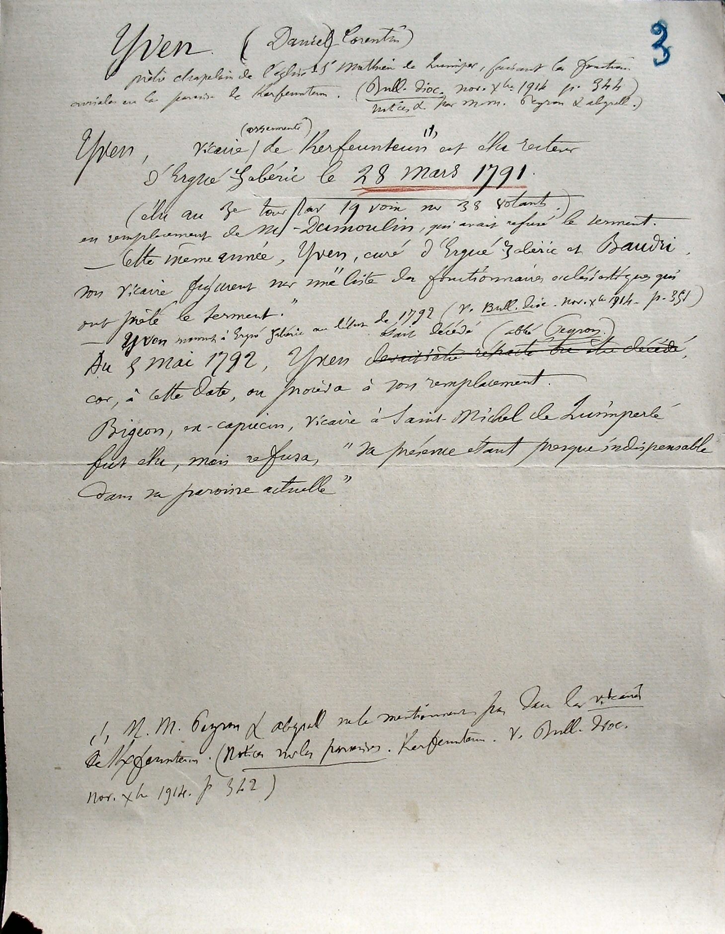 - 1870-1910 - Fiches de Prosper Hémon sur les curés gabéricois pendant la révolution