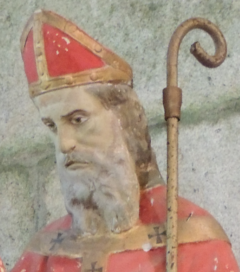 - La petite statue de l'évêque Alain, alias sant Alar, à Kerdévot