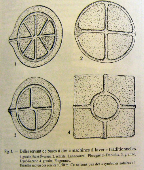 On trouva ci-dessous quelques explications, témoignages et bien sûr les photographies de ces pierres signalées, les dernières inventoriées étant celles de Kerdilès, Kergoan et Balanoù (2018), Lezergué (2021) et Pennarun (2022). Toutes les informations et autres trouvailles éventuelles seront les bienvenues pour compléter cet inventaire patrimonial. Autres lectures : « Patrimoine rural et utilitaire » ¤ « GIOT Pierre-Roland - Machines à laver, pressoirs à cidre ou pierres gravées ? » ¤ « Une pierre insolite, Le Télégramme 1973 » ¤ « KERVAREC André - L'ancêtre de la machine à laver » ¤ « 1792-1803 - Séquestre, amnistie et main levée pour les de La Marche de Lezergué » ¤ |