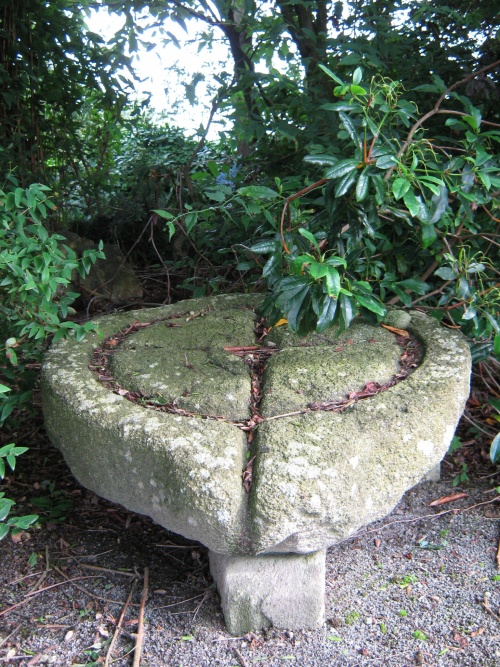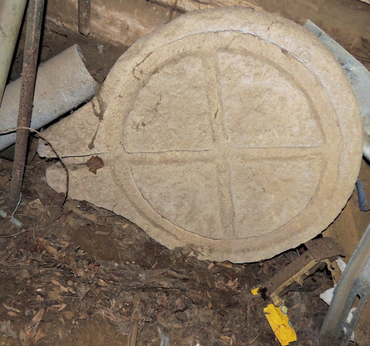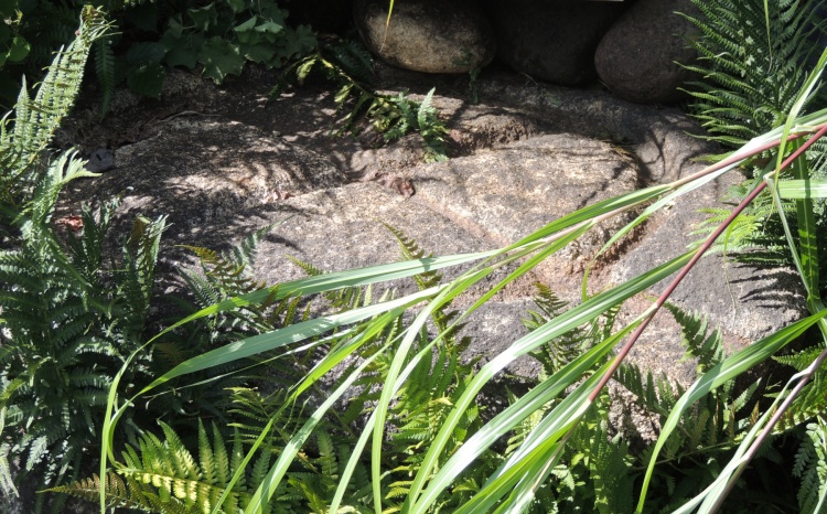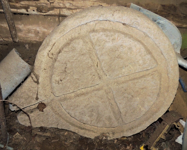 BALANOU Dans le jardin de Balanou, pierre de 93cm x 20cm, déversoir de 17cm, rigole intérieure en croix.