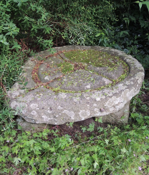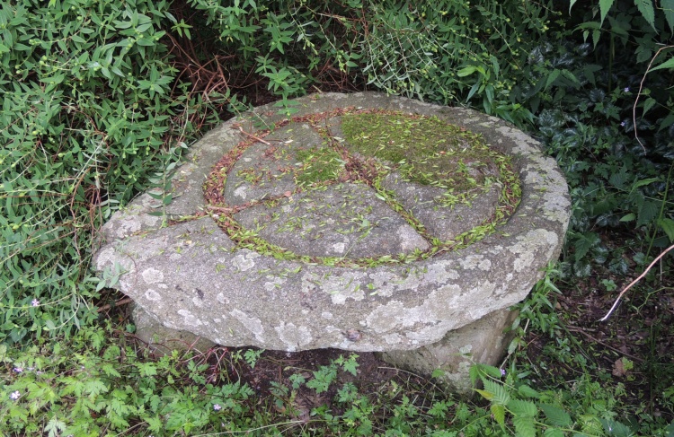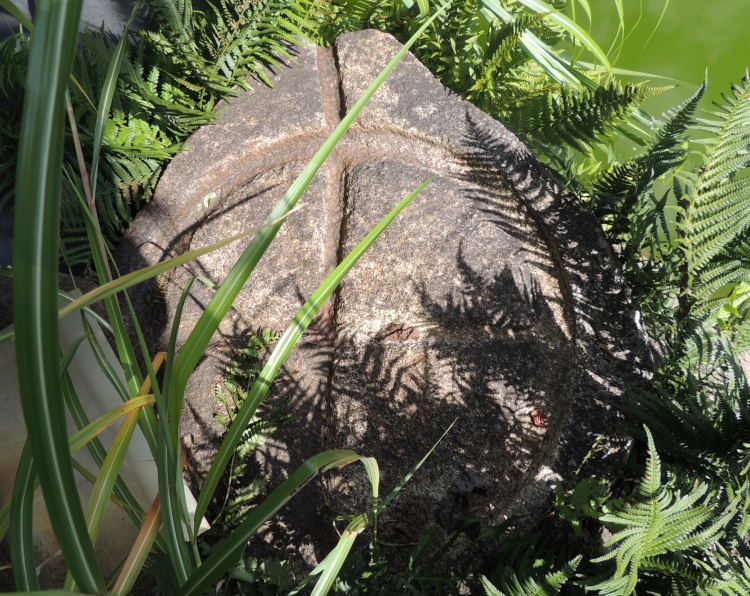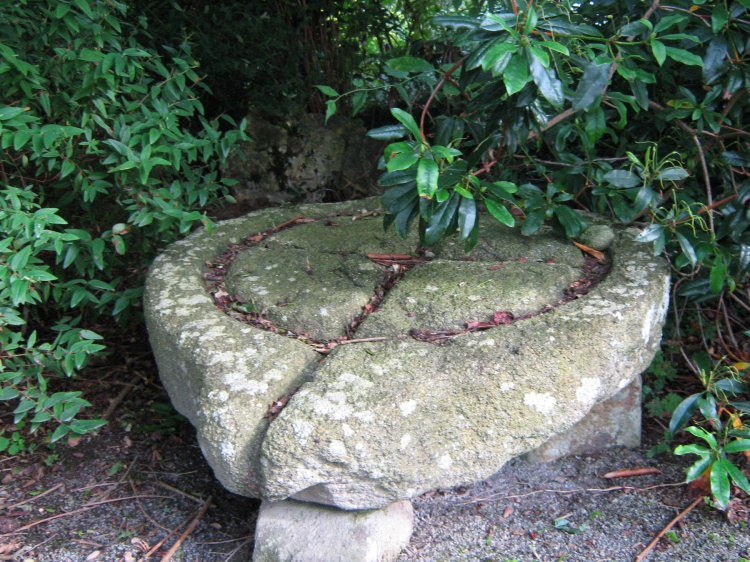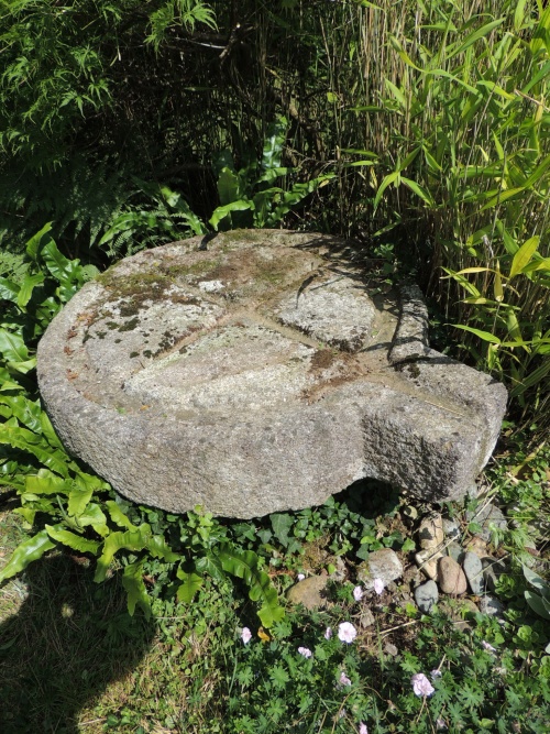 PENNERVAN Dans le jardin de Pennervan, pierre de 1m x 20cm, déversoir de 10cm, rigole intérieure en croix.