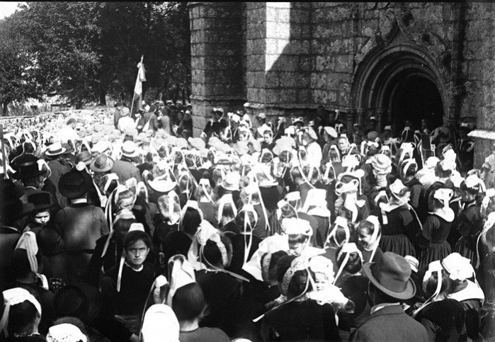 | Un photographe philanthrope immortalisant les participants à un pardon [1] à la chapelle de Kerdévot dans les années 1920.
