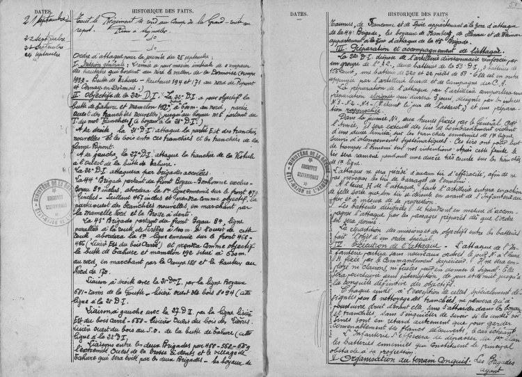 « Le 116e quitte le camp de la grand-route à 23 heures pour se poster dans les tranchées de 1ère ligne en vue de l'assaut dont la préparation par l'artillerie se poursuit depuis 3 jours [4].