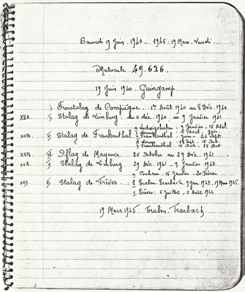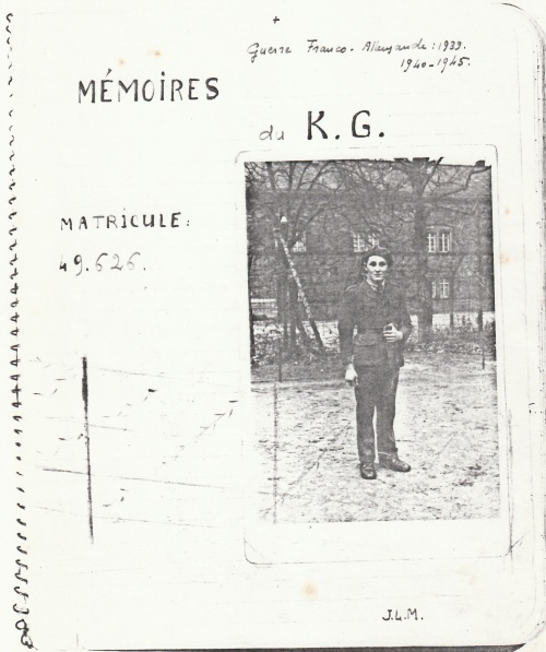 Jean-Louis avait intitulé son journal « Mémoires du K.G., matricule 49626 », le K.G. étant initiales de Kriegsgefangener, « prisonnier de guerre » (Krieg = guerre, Gefangener = capturé).