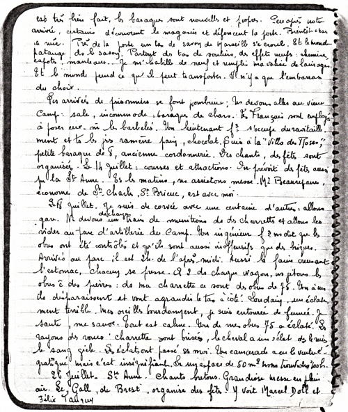Là-bas en plein coeur de l'Allemagne, dans son premier camp de prisonnier à Limburg (Stalag XIIA), il les recopia dans un cahier relié de marque Schola, qu'il compléta les années suivantes de deux autres cahiers identiques. A son retour de captivité, sa soeur Elizabeth recopia délicatement le texte de Jean-Louis sur deux cahiers à spirales, constituant la seule version d'origine et intégrale qui a été conservée. Plus tard ces cahiers furent de nouveau recopiés, remaniés et repris au format A4 plus facilement photocopiables et agrémentés de photos prises en Allemagne et à son retour de captivité. |