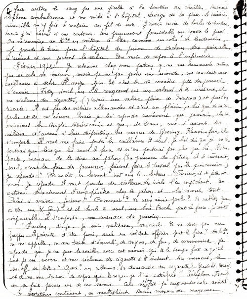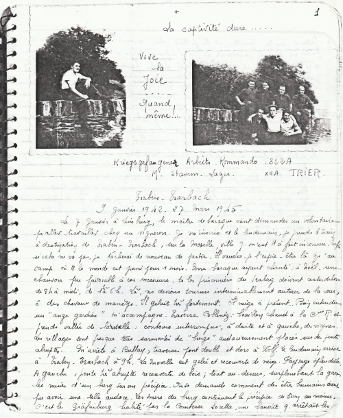 Au début il écrivit son journal sur des feuilles volantes en racontant sa courte mobilisation suivi de son expérience de KG (Kriegsgefangener), prisonnier en route vers le pays ennemi.