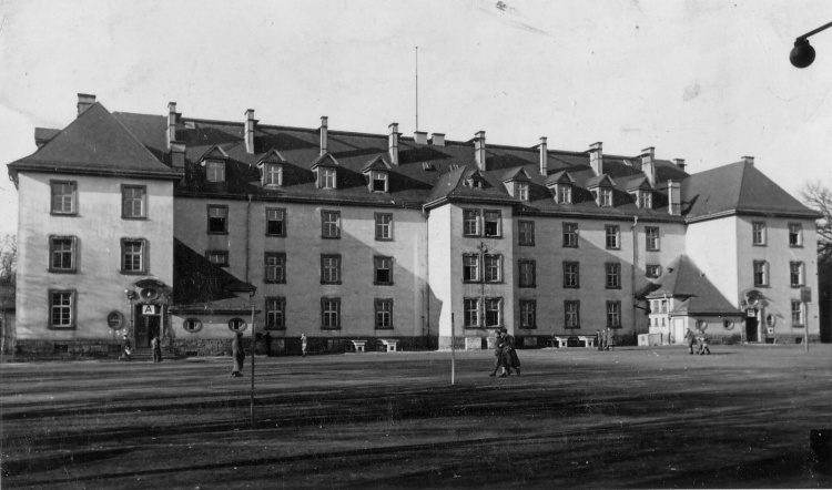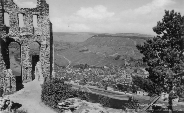 Dienstag 15. Juli 44 Also nehme ich den Zug nach Trier, historische Stadt. Mit Vergnügen hätte ich mir die alten römischen Ruinen angeschaut (Thermen, Porta Nigra), den Dom… Aber ich bin ja K.G.!... Vom Bahnhof steige ich den Weg mit Treppenstufen aus Holz auf den Petrisberg hinauf (mehr als 300 Meter | |
