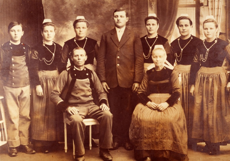 Sur la photo: Les parents Jean et Anna née Poupon. Et de gauche à droite : Jean, Marie-Anne, Anna-Marie, Jean-Marie, Marie-Catherine, Marie-Jeanne et Marie. Les deux sœurs Marie-Anne et Marie se marieront le même jour en 1919.
