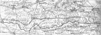 Mais au final, malgré les pertes humaines énormes, on se satisfait de l’héroïsme des soldats : « Tout le régiment a fait superbement son devoir et n'a été arrêté que par l'obstacle infranchissable des fils de fer dont la valeur est démontrée par les pertes sévères que nous avons subies : 34 officiers et plus de mille hommes ». On peut voir sur la carte ci-dessous (source chtimiste.com) que, le 25.09.1915, le front français le plus avancé et le plus exposé aux tirs ennemis est bien sur la commune de Tahure.