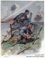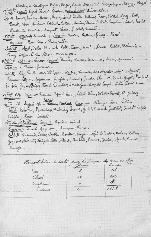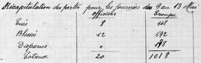 Le Journal de Marche et d'Opérations du 97e Régiment d'Infanterie atteste bien que les troupes du 2e Bataillon de Jean Louët (il était dans la 5e Compagnie, soit la 1ère Cie du 2e Bataillon) a bien réussi son assaut : « À 10 heures, débouché des unités de 1ère ligne, suivie rapidement des unités de renfort, tandis que le 3ème Bataillon vient de suite occuper les emplacement prises et dépassées (10h20). Le passage des 3 lignes de tranchées allemandes et du terrain en arrière, couvert de boyaux et de rameaux [...] À 11 heures, arrivé au Cabaret Rouge des premiers éléments du 97e. » Jean Louët est bien nommé dans le récapitulatif nominatif des pertes parmi les 12 officiers blessés pendant ces journées du 9 au 13 mai. Par ailleurs on comptera parmi les hommes de troupes du 97e RI plus de 1000 tués, blessés et disparus. Cette bataille de l'Artois Après guerre Jean Louët réintègre la Garde Républicaine ; sur un reçu de pension de sa Légion d'Honneur daté de 1920, il est domicilié à : « Garde républicaine, Paris, Boulevard Henri IV ». Il décède le 18 août 1926 dans le département des Hautes Alpes. Par contre nous ne savons pas s'il a formé une famille et eu des descendants. |