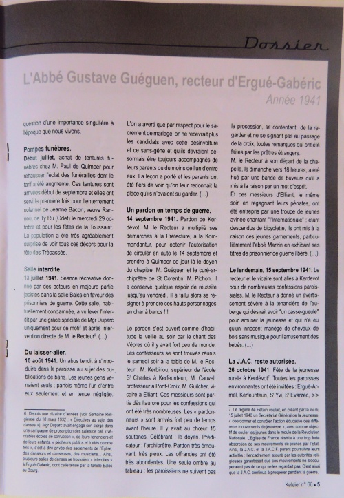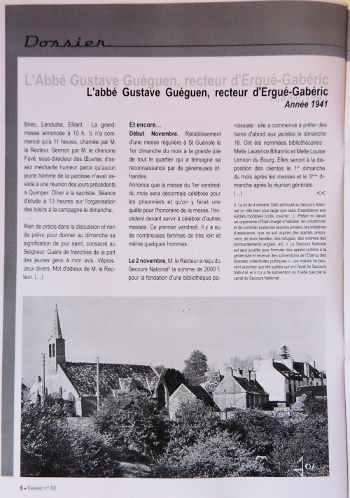 Autres articles : « Gustave Guéguen, recteur (1941-1956) » ¤ « 1941-1956 - Le journal-registre paroissial du recteur Gustave Guéguen » ¤ « Les années difficiles 1940-1945, témoignage de Jean Guéguen » ¤ « Gustave "Person bragou ruz" raconté par Jean Guéguen et l'abbé Pennarun » ¤ « Souvenirs d'enfance de fin de guerre 1939-45, par Michel Le Goff » ¤