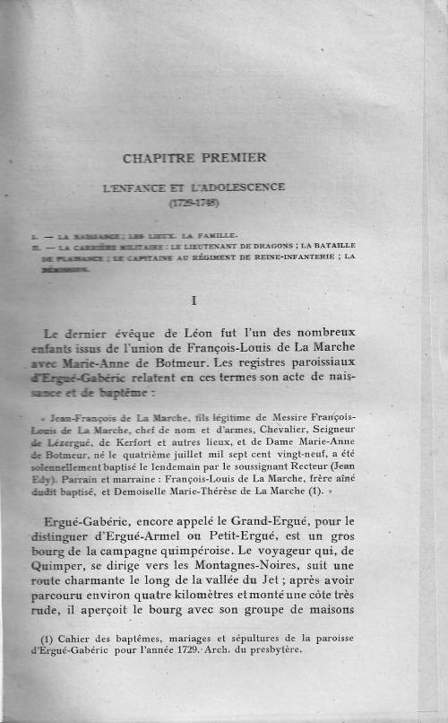 Le premier chapitre du livre (cf pages 1 à 13 ci-dessous) commence par une description de la paroisse natale du prélat :