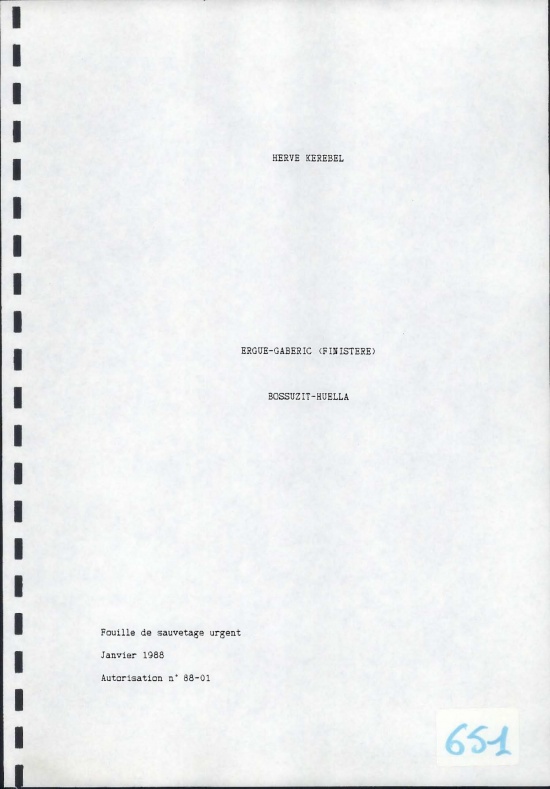| Ce rapport technique daté de 1988 nous donne les premières constatations du responsable des fouilles à Bossizit-Huella, près de la Salverte, suite à une demande de permis de construire d'une aire de lavage de camion.