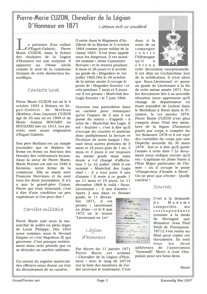 • Page 3 - Pierre-Marie Cuzon, chevalier de la légion d'honneur / Lietenn evit an soudard