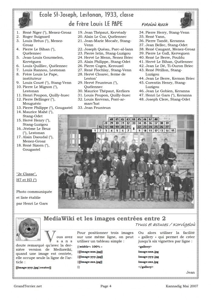 - Page 4 - Photo d'école de 1933 à Lestonan, avec 47 noms d'écoliers / Fotoioù kozh