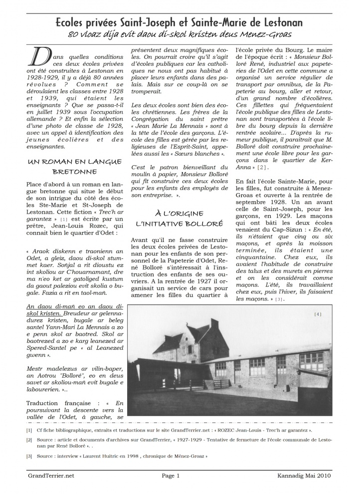 - Page 1-4 - Ecoles privées Saint-Joseph et Sainte-Marie de Lestonan